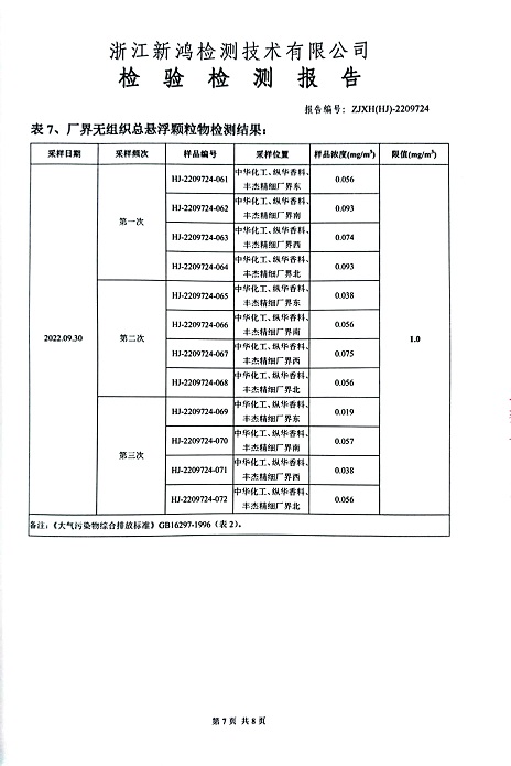 報告名稱(chēng):中華化工、縱華、豐杰2022年3季度廠(chǎng)界檢測報告