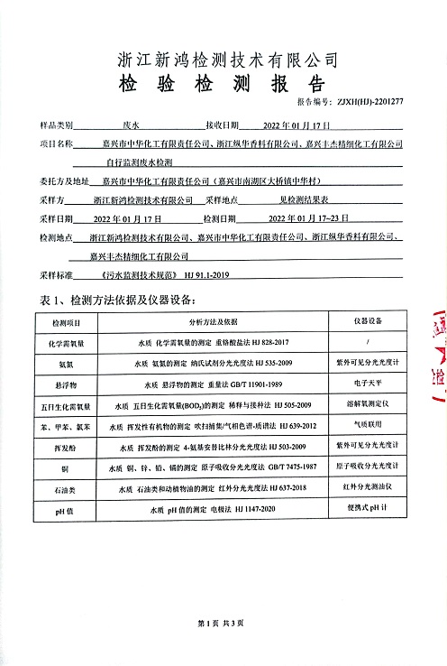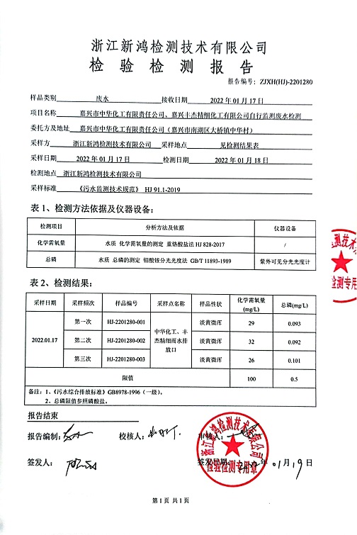 報告名稱(chēng):中華化工、縱華、豐杰2022年1季度廢水檢測報告