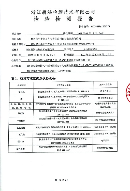 報告名稱(chēng):中華化工2022.1月廢氣檢測報告