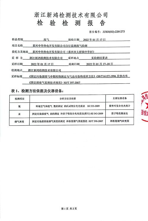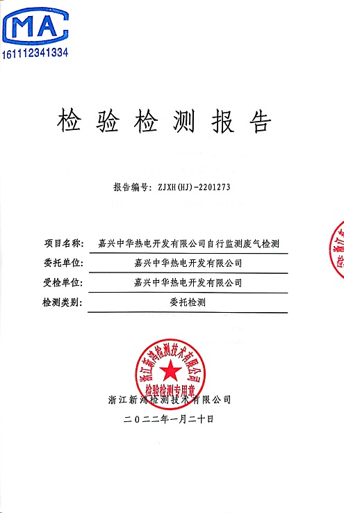 報告名稱(chēng):中華熱電2022.1月廢氣檢測報告