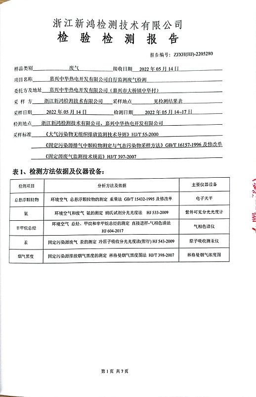 報告名稱(chēng):中華熱電2022.5月廢氣檢測報告
