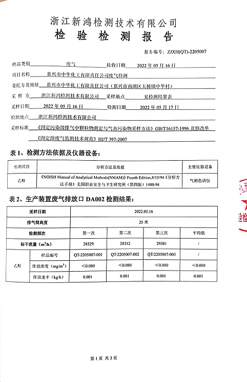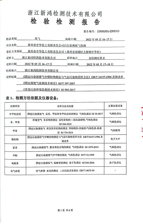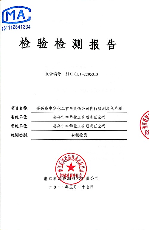 報告名稱(chēng):中華化工2022上半年廢氣檢測報告