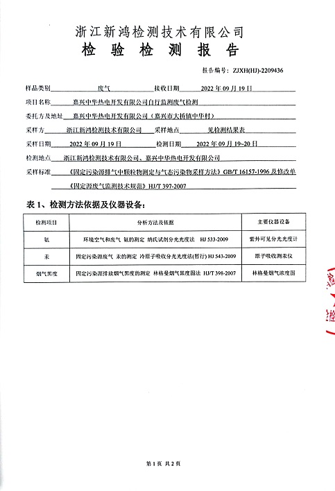 報告名稱(chēng):中華熱電2022年9月廢氣檢測報告