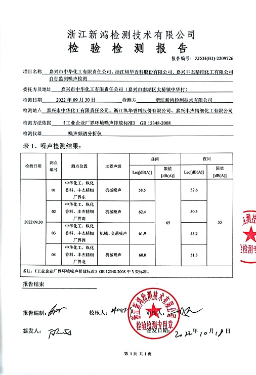 報告名稱(chēng):中華化工、縱華、豐杰2022年3季度噪聲檢測報告