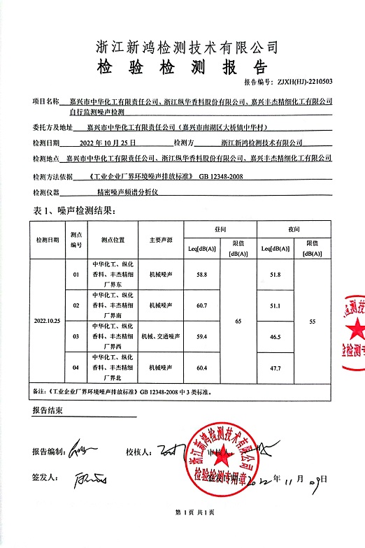 報告名稱(chēng):中華化工、縱華、豐杰2022年4季度噪聲檢測報告