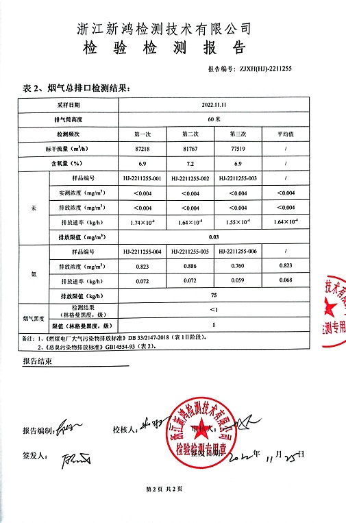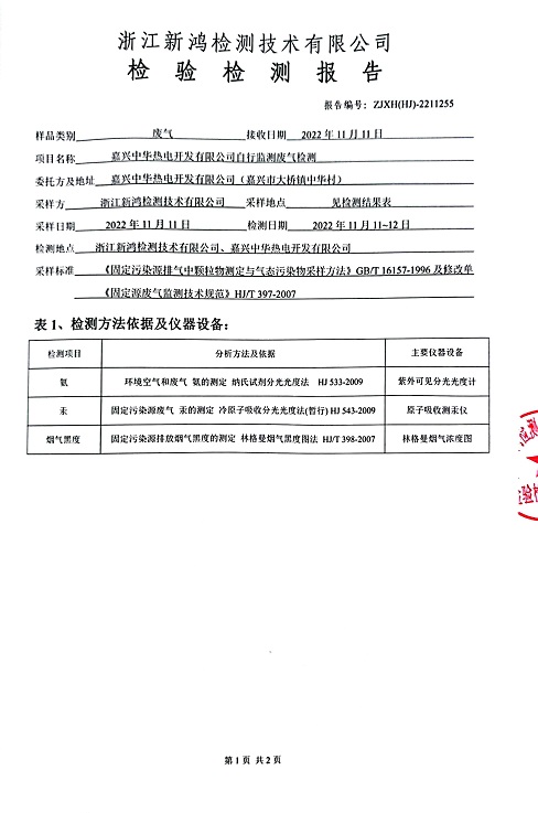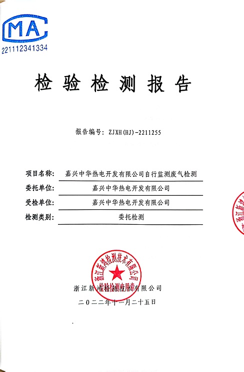 報告名稱(chēng):中華熱電2022年11月廢氣檢測報告