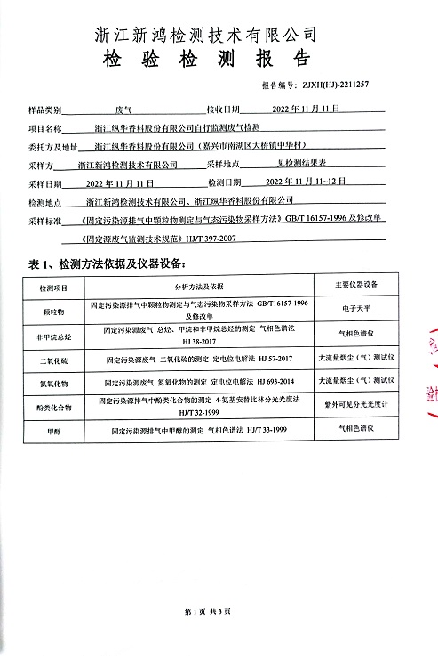 報告名稱(chēng):縱華2022年11月廢氣檢測報告