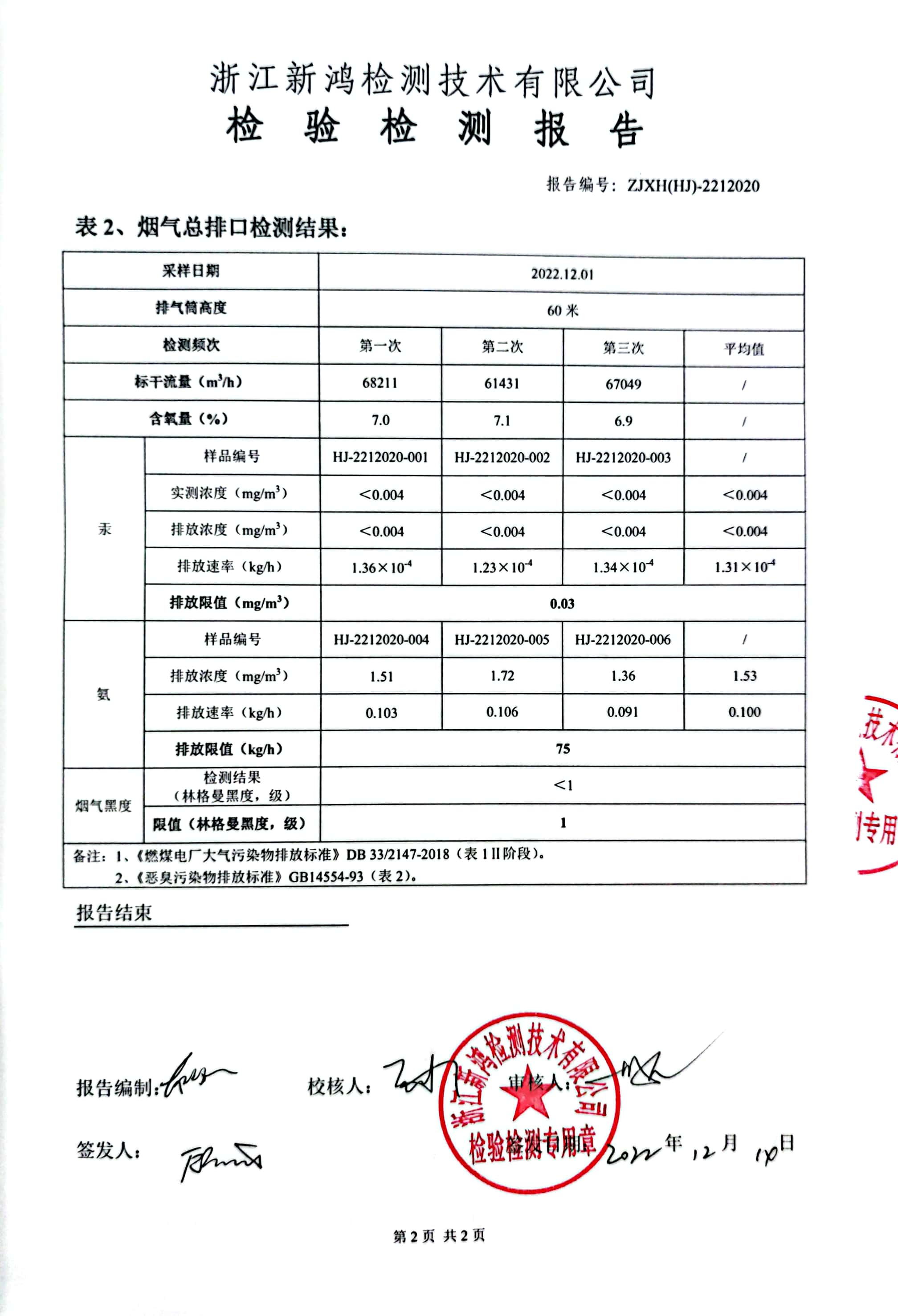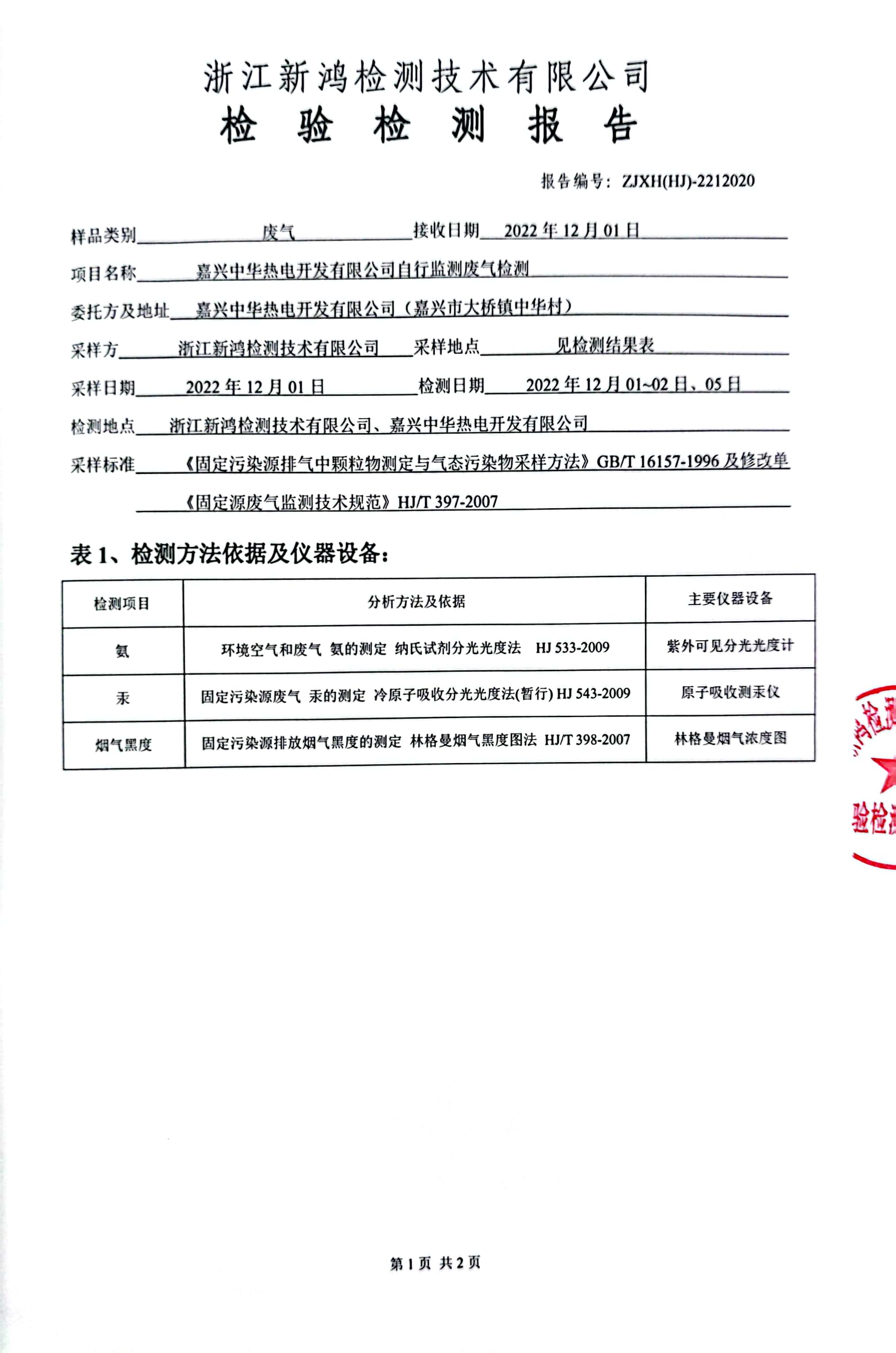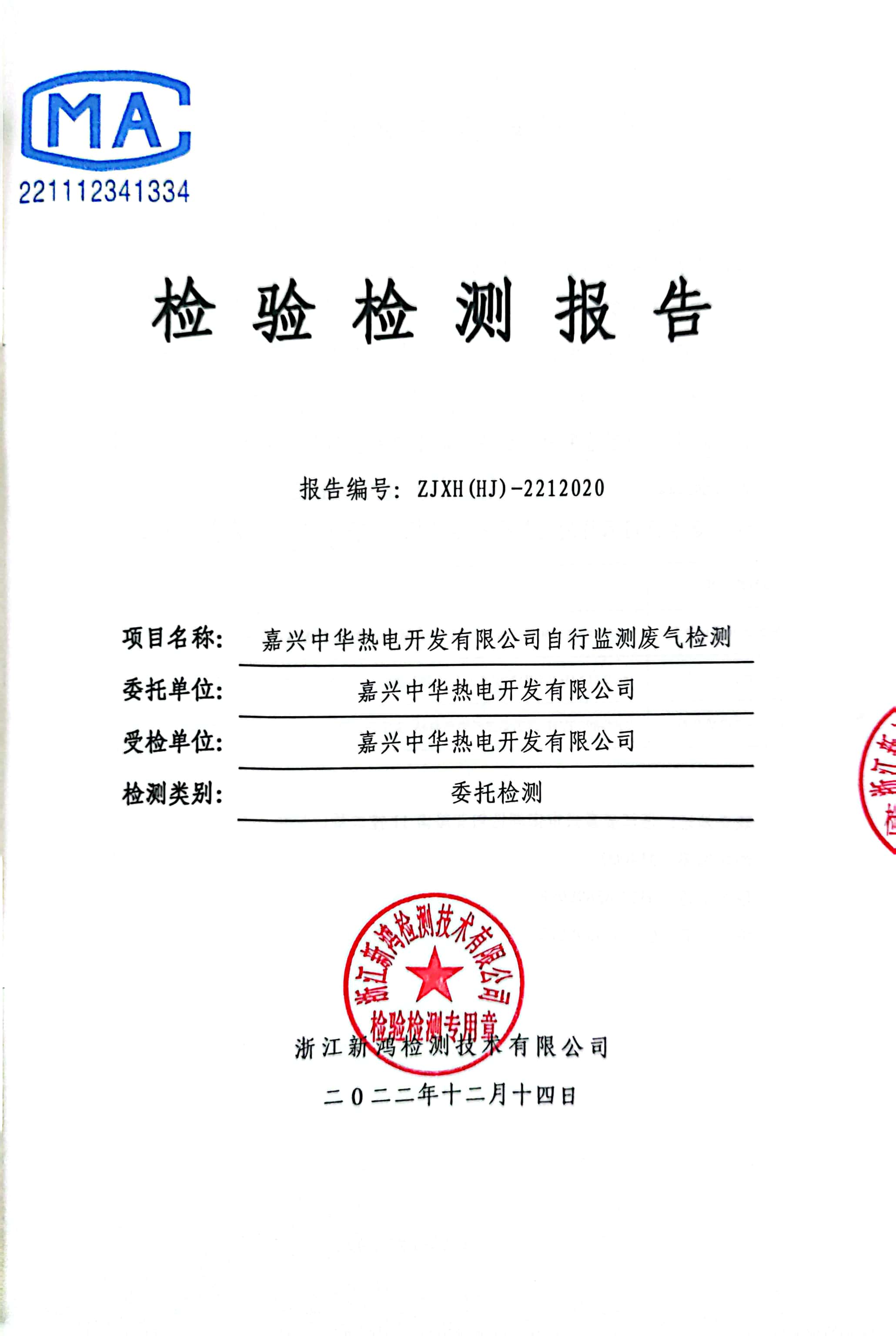 報告名稱(chēng):中華熱電2022年12月廢氣檢測報告