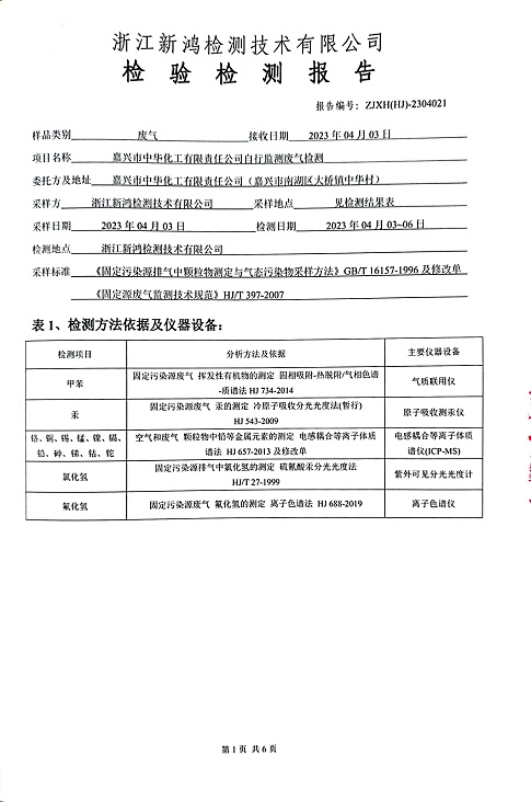 報告名稱(chēng):中華化工2023.4月廢氣檢測報告