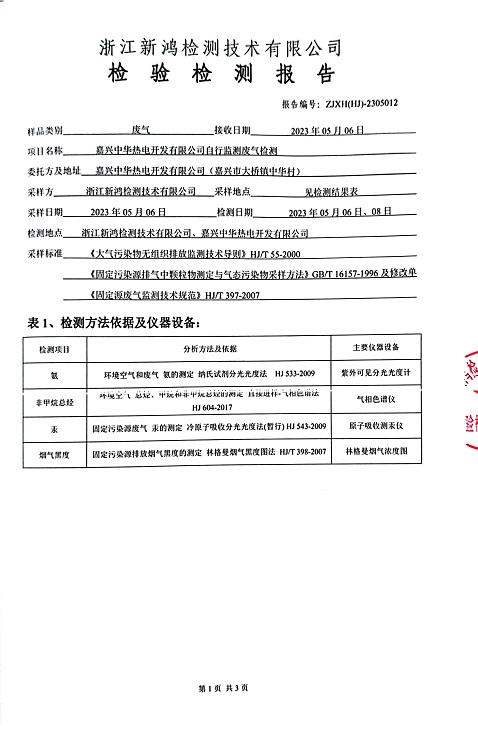 報告名稱(chēng):中華熱電2023.5月廢氣檢測報告