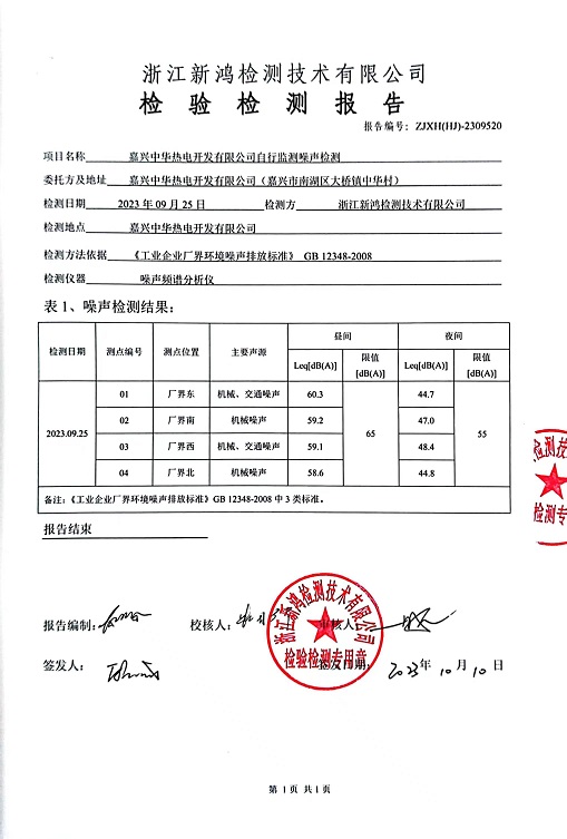 - 中華熱電3季度廠(chǎng)界檢測報告