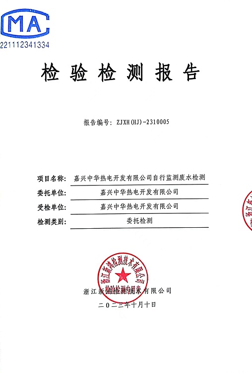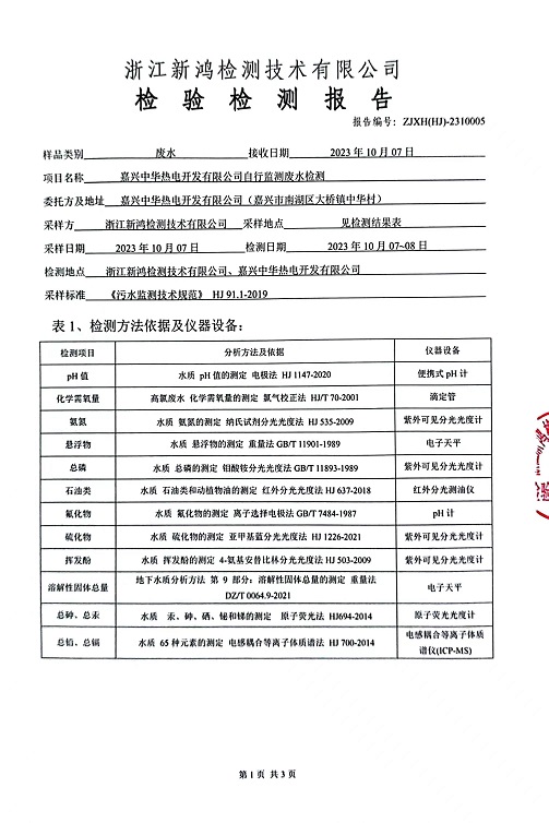 報告名稱(chēng):中華熱電2023.10月廢水檢測報告