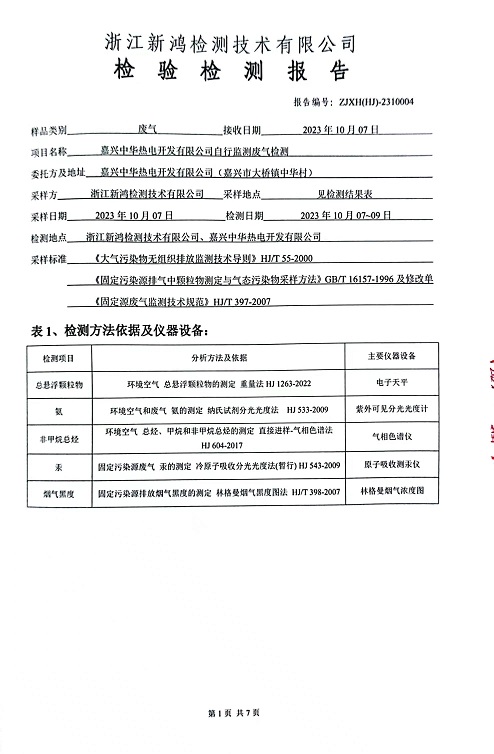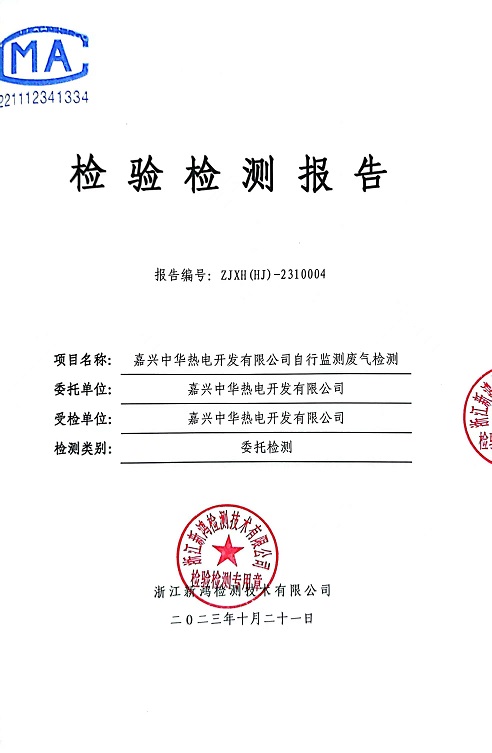 報告名稱(chēng):中華熱電2023.10廢氣檢測報告