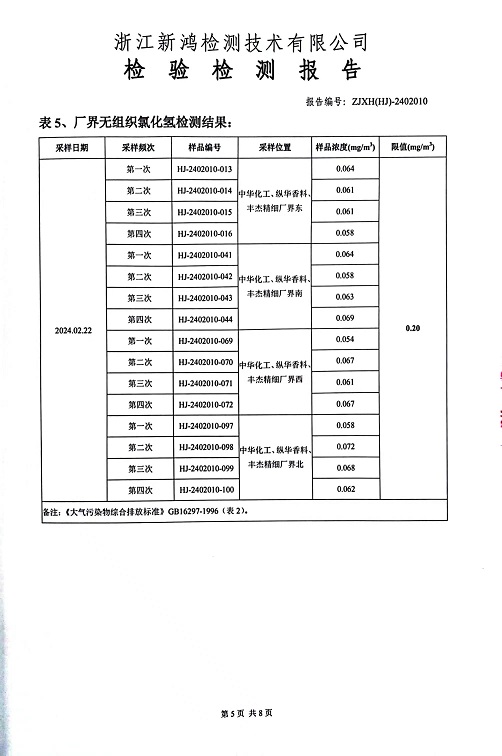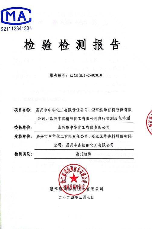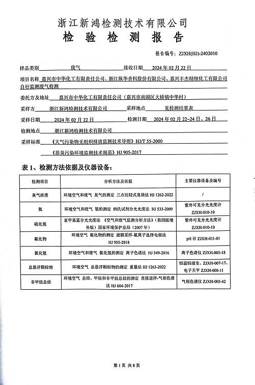 報告名稱(chēng):2024年中華化工1季度廠(chǎng)界檢測報告
