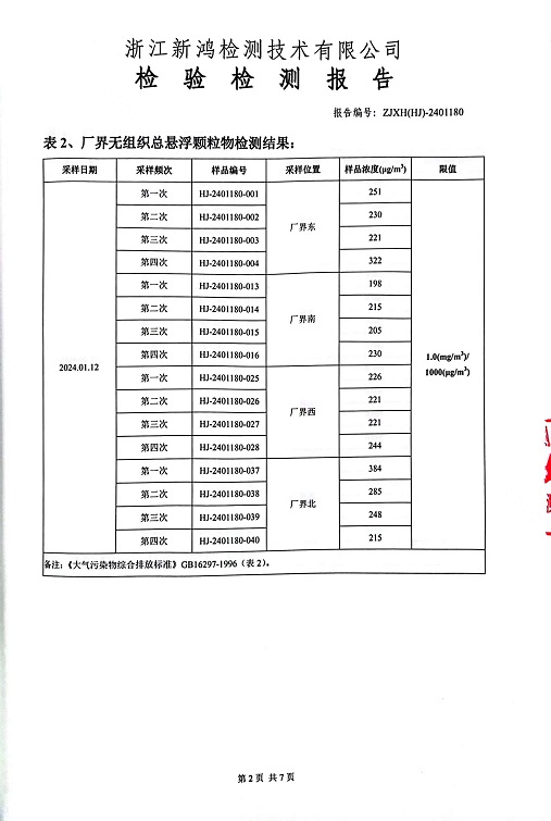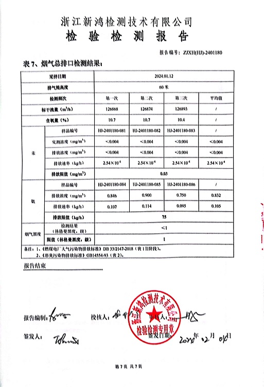 報告名稱(chēng):2024年中華熱電1月廢氣檢測報告