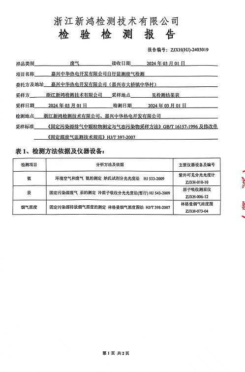 報告名稱(chēng):2024年中華熱電3月廢氣檢測報告