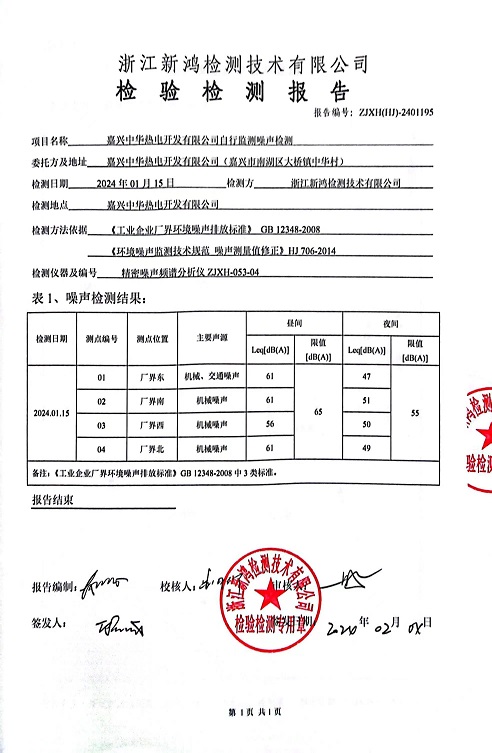報告名稱(chēng):2023年中華熱電1季度噪聲檢測報告