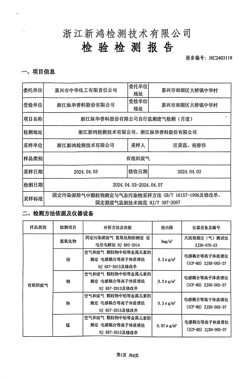 報告名稱(chēng):2024年縱華4月廢氣檢測報告