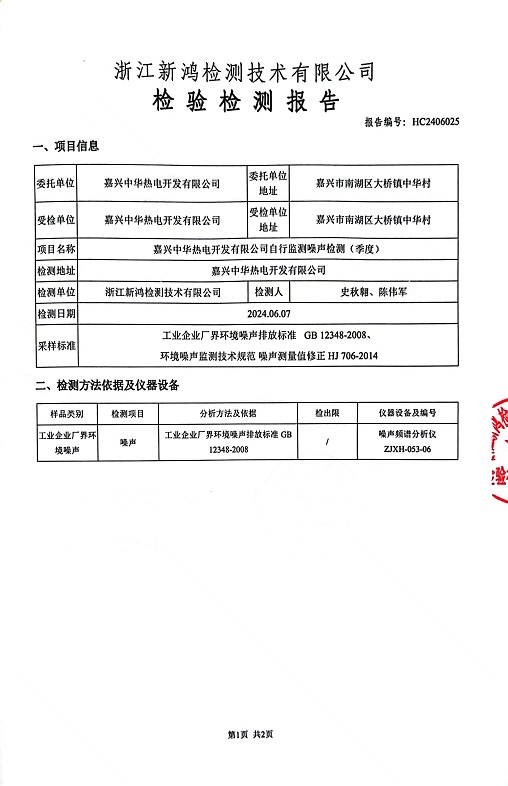 報告名稱(chēng):2024年中華熱電2季度噪聲