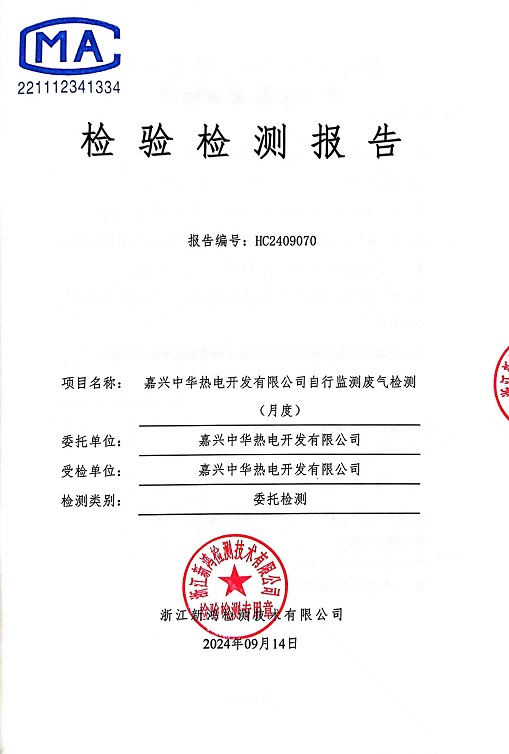 報告名稱(chēng):中華熱電9月廢氣檢測報告