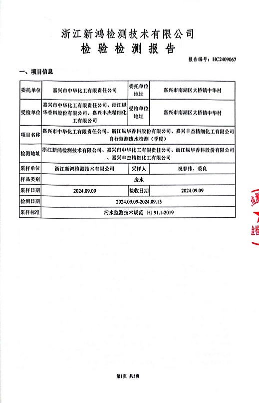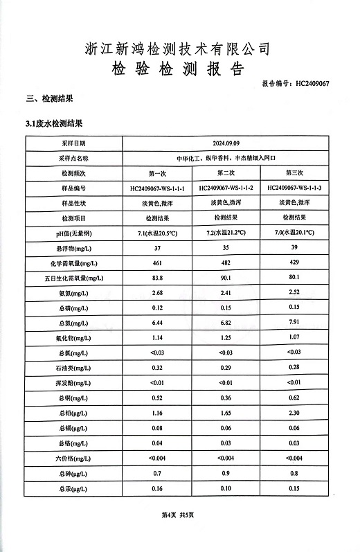 報告名稱(chēng):中華化工3季度廢水檢測報告