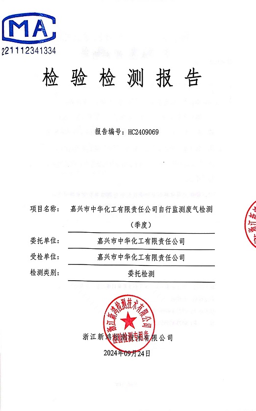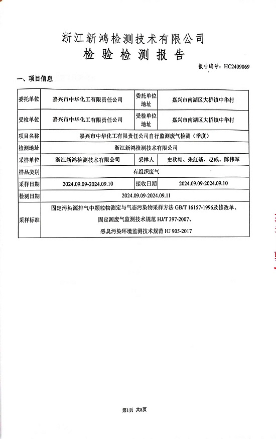 報告名稱(chēng):中華化工3季度廢氣檢測報告