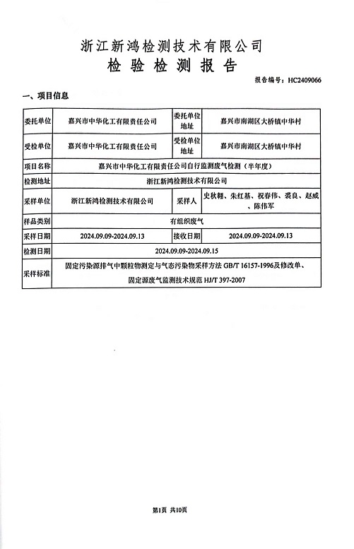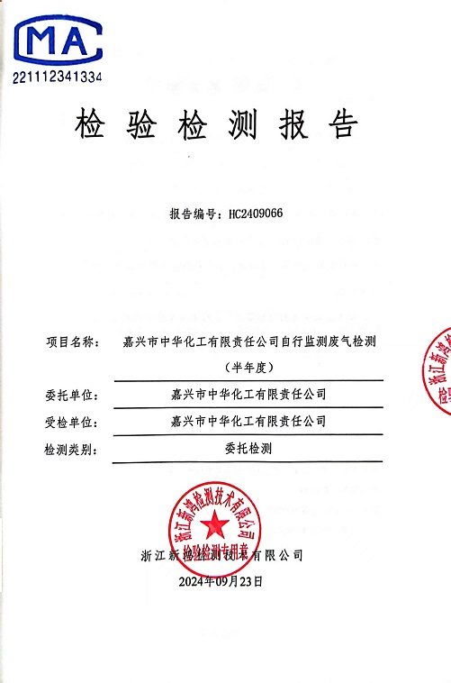 報告名稱(chēng):中華化工下半年廢氣檢測報告