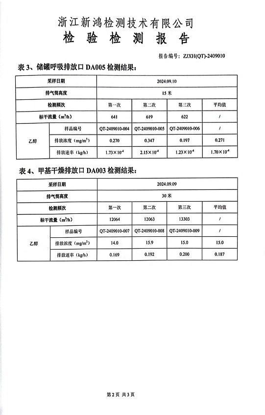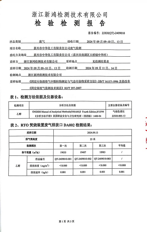 報告名稱(chēng):中華化工下半年乙醇檢測報告