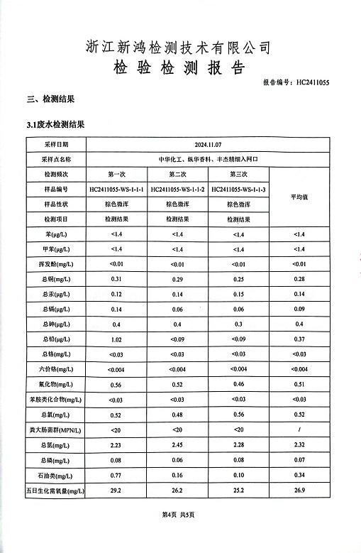 報告名稱(chēng):中華化工4季度廢水檢測報告