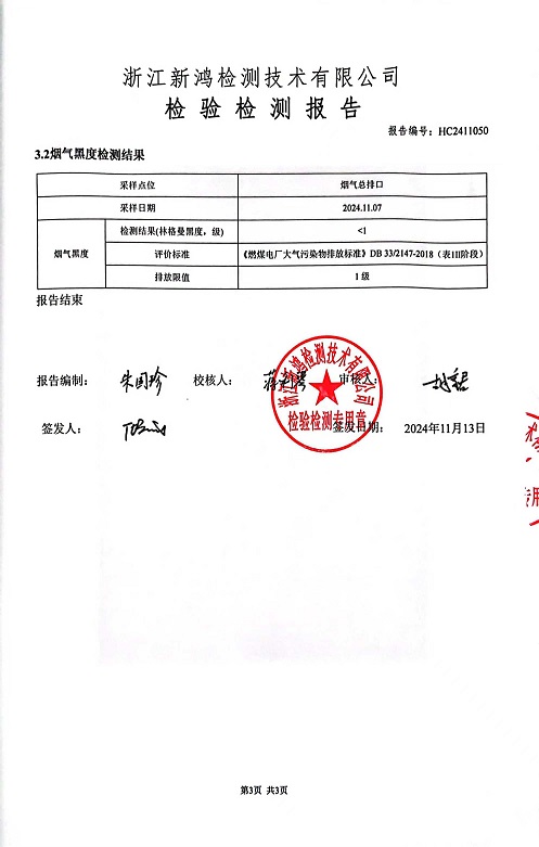 報告名稱(chēng):中華熱電11月廢氣檢測報告