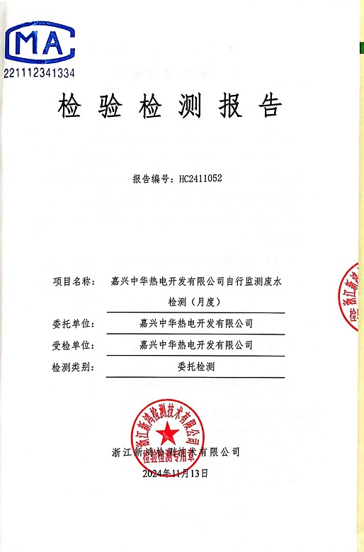 報告名稱(chēng):中華熱電11月廢水檢測報告