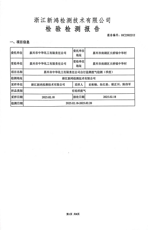 報告名稱(chēng):中華化工2025年1季度廢氣檢測報告