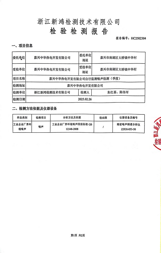 報告名稱(chēng):中華熱電2025年1季度噪聲檢測報告
