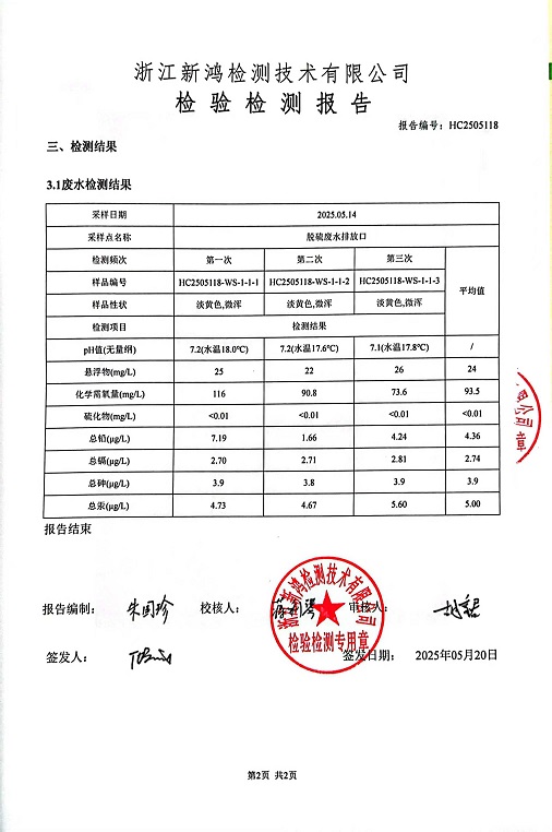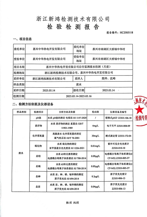 報告名稱(chēng):中華熱電5月廢水檢測報告