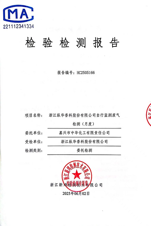 報告名稱(chēng):縱華香料5月廢氣檢測報告