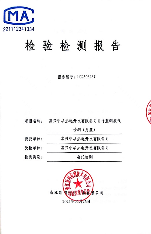 報告名稱(chēng):中華熱電6月廢氣檢測報告