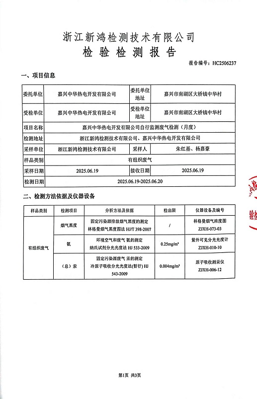 - 中華熱電3季度廠(chǎng)界檢測報告