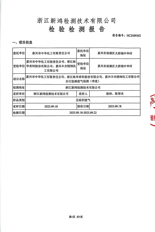 報告名稱(chēng):中華化工3季度廠(chǎng)界檢測報告